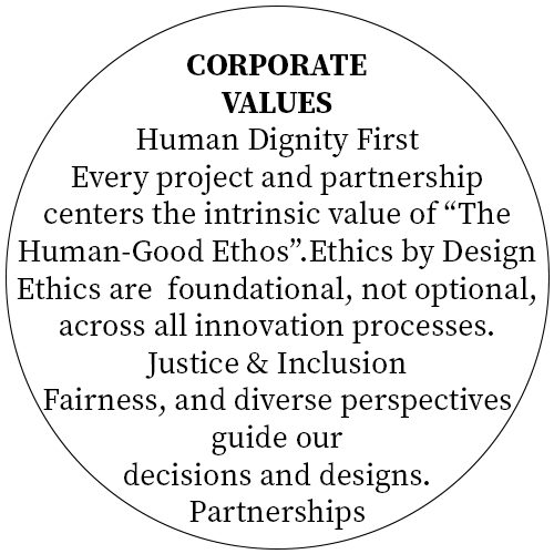 The Human-Good Ethos emphasizes the intrinsic value of every human being. It recognizes the interconnectedness of human welfare with broader societal, technological, and environmental concerns and solutions. It encourages actions and decisions that promote compassion, and sustainability, aiming to create a world where all individuals have the opportunity to lead meaningful and fulfilling lives while promoting positive impact.