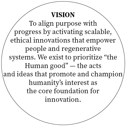 We exist to support regenerative futures where ethics, imagination, and innovation meet— placing The Human-Good Ethos at the core of Innovation, addressing global challenges and the major gap in sustainability innovation.
